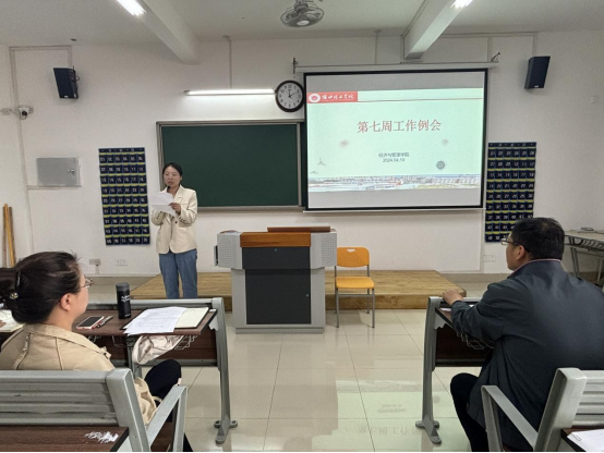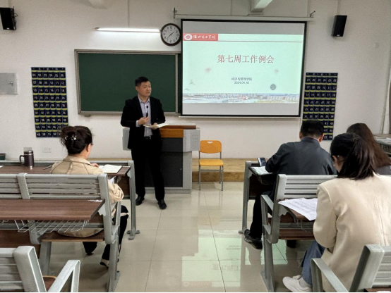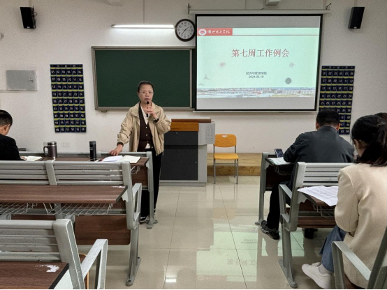 2024年4月10日下午,永利集团3044欢迎你在一教213召开永利集团3044欢迎你第七周工作例会,院长吴玲主持会议,副院长秦品德、院长助理张珊以及全体教师参会。