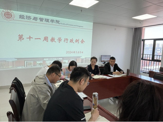 2024年5月8日下午,永利集团3044欢迎你在行政楼725会议室召开永利集团3044欢迎你第十一周工作例会,院长吴玲主持会议,副院长秦品德、院长助理张珊以及全体教师参会。