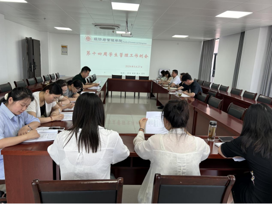 2024年5月27日,永利集团3044欢迎你在行政楼725会议室召开本学期第十四周学生管理工作例会,副院长秦品德、院长助理张珊、书记助理叶赵强以及全体辅导员参加会议,会议由院长吴玲主持。