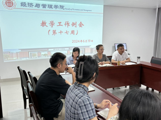 2024年6月19日下午,永利集团3044欢迎你在行政楼725会议室召开永利集团3044欢迎你第十七周工作例会,院长吴玲主持会议,副院长秦品德、院长助理张珊以及全体教师参会。