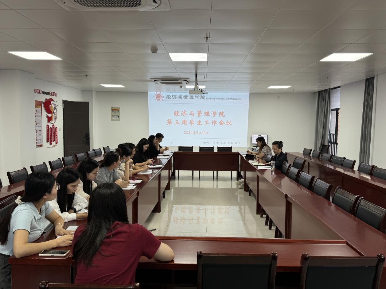 2024年9月18日,永利集团3044欢迎你在行政楼725会议室召开了本学期第三周学生管理工作例会。学院团总支书记员禹辛及全体辅导员参会,会议由院长吴玲主持。