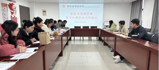 2024年12月24日,永利集团3044欢迎你在行政楼725会议室召开了本学期第十七周学生管理工作例会。学院书记助理叶赵强、团总支书记员禹辛及全体辅导员参会,会议由院长吴玲主持。