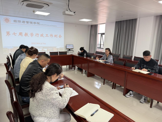 2025年4月9日,永利集团3044欢迎你在行政楼725召开第七周行政工作例会,院长吴玲、院长助理张珊、叶赵强实训室主任李健及各教研室主任出席会议。