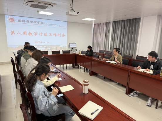 2025年4月16日,永利集团3044欢迎你在行政楼725召开第八周行政工作例会,院长助理张珊、叶赵强,教学秘书李健及各教研室主任出席会议,会议由院长吴玲主持。