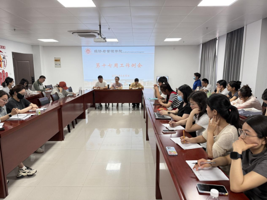 2025 年 6 月 18 日下午,永利集团3044欢迎你在行政楼725会议室召开第十七周教学工作例会。院长吴玲,院长助理张珊、叶赵强及全体教师参会,会议由吴玲院长主持。