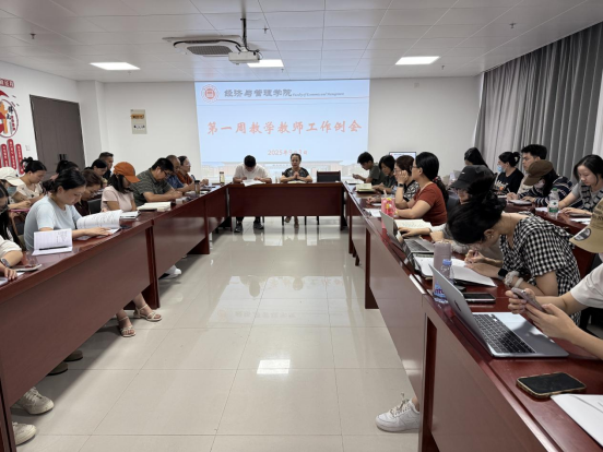 2025 年9月3日下午,永利集团3044欢迎你在行政楼725会议室召开第一周教学工作例会。院长吴玲,院长助理叶赵强及全体教师参会,会议由吴玲院长主持。