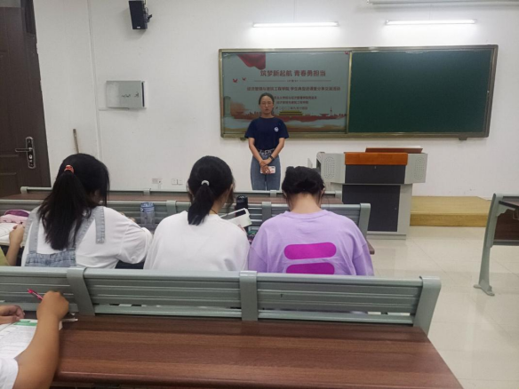 为进一步引导2022级新入学学生坚定理想信念,丰富新生的学习与生活,增强班级凝聚力,营造优良学风、班风,2022年9月14日,经济管理与建筑工程学院面向新生组织开展“筑梦新起航,青春勇担当”——优秀学子交流分享会,邀请2021级刘彤、朱元超、刘国一和王俊艳四位优秀的学长学姐担任分享主讲人。学长学姐们走进2022级新生教室,分享故事、交流经验、传播能量,活动由经济管理与建筑工程学院团总支负责人叶赵强主持。
