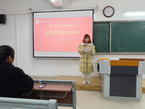 会上,员禹辛书记详细的宣读活动通知及具体活动安排。她谈到,入党积极分子志愿者活动是为了帮助入党积极分子培训班的全体学员在思想和行动上积极向党组织靠拢,进一步锤炼入党积极分子的奉献精神和社会责任感,弘扬传统光荣传统。所以对所有参加志愿活动的学员提出以下3点要求:第一、所有学员必须参加本次志愿活动,完成30个小时的服务时长。第二、认真记录和总结志愿者服务的过程和成效,并提交相关的活动资料和总结。第三、要将志愿服务的内容变成常态化的行动规范。