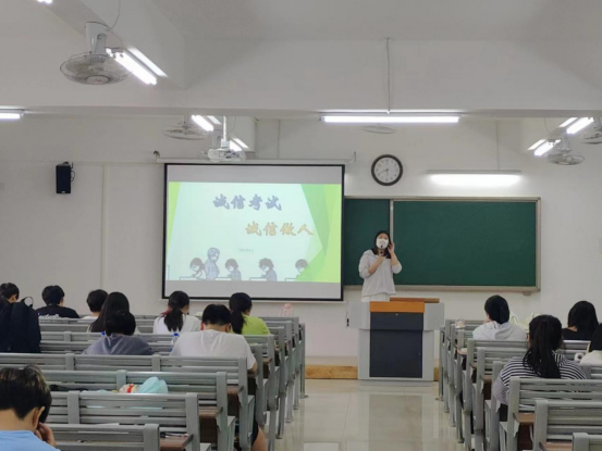 会上,各班级辅导员对教育考试诚信教育进行详细的阐释,带领大家学习了《国家教育考试违规处理办法》和《永利集团3044欢迎你学生手册学生考试违规处理办法》相关规定,以及学生手册上学校对于考试作弊的惩罚制度等相关内容,以讲述诚信为人、诚信考试的重要意义为重点开展主题班会,引导学生遵规守纪、脚踏实地学习,互相帮助,从而达到共同进步的良好效果。
