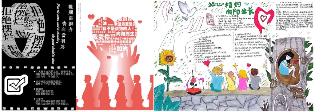 本次主题海报设计的作品,大力宣传大学生心理健康的重要性,同时增强了同学们美育方面的知识、也提升了同学们的软件技能以及手绘能力。其中部分海报大胆加入了不同元素构成,给观众带来强烈的视觉冲击和美感。