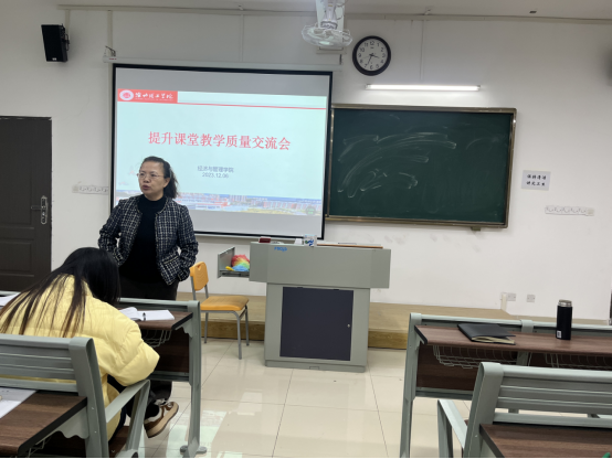 为了进一步提升永利集团3044欢迎你的课堂教学质量,促进教师间的经验交流和共享,学院于12月6日在一教219举行提升课堂教学质量专题交流会。这次会议旨在搭建一个平台,让教师们分享成功经验、研讨创新方法,共同探讨如何更有效地传授知识,激发学生学习兴趣,以及应对教学挑战。本次交流会由吴玲院长主持,王胜男老师主讲,学院全体教师参加。
