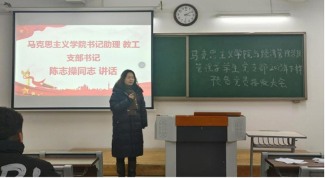 为进一步加强党员队伍建设,根据发展党员工作计划,经上级党委预审同意,经济学学生党支部、管理学学生党支部于2023年12月15日下午,分别在二教422、423教室召开预备党员发展大会。本次大会坚持公开、公正、公平的原则,严格按照党员发展程序规定开展。会议采取线上线下相结合的方式进行。本次会议由支部委员会成员刘良晨和周莉文主持。