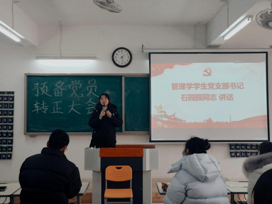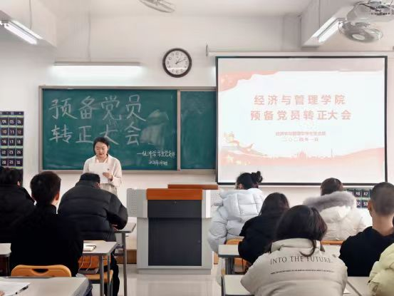 2024年1月9日,永利集团3044欢迎你学生支部在二教323教室召开预备党员转正大会。书记助理叶赵强、组织员王胜男、经济学学生党支部书记员禹辛、管理学学生党支部书记石园园以及全体学生党员参加本次会议,会议由丁阳主持。