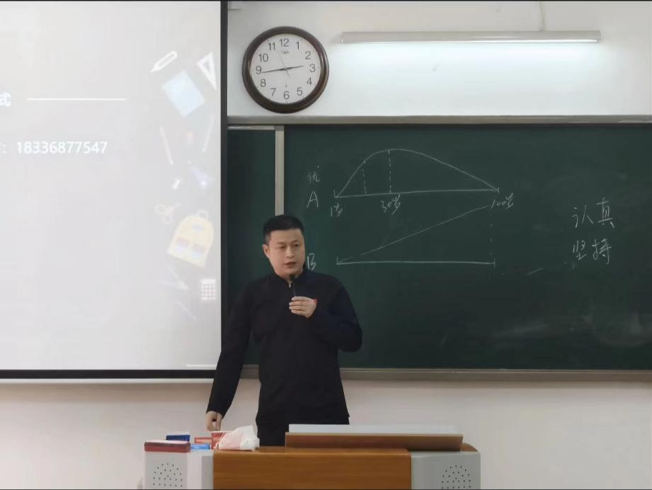 互动环节,销售总监王宗来以身为例与同学们进行了深入的交流,并以图文并茂的形式介绍了职业发展的不同阶段的不同感悟,并鼓励同学们珍惜宝贵就业机会,以时不我待,只争朝夕的精神,积极投身到职业发展中来。
