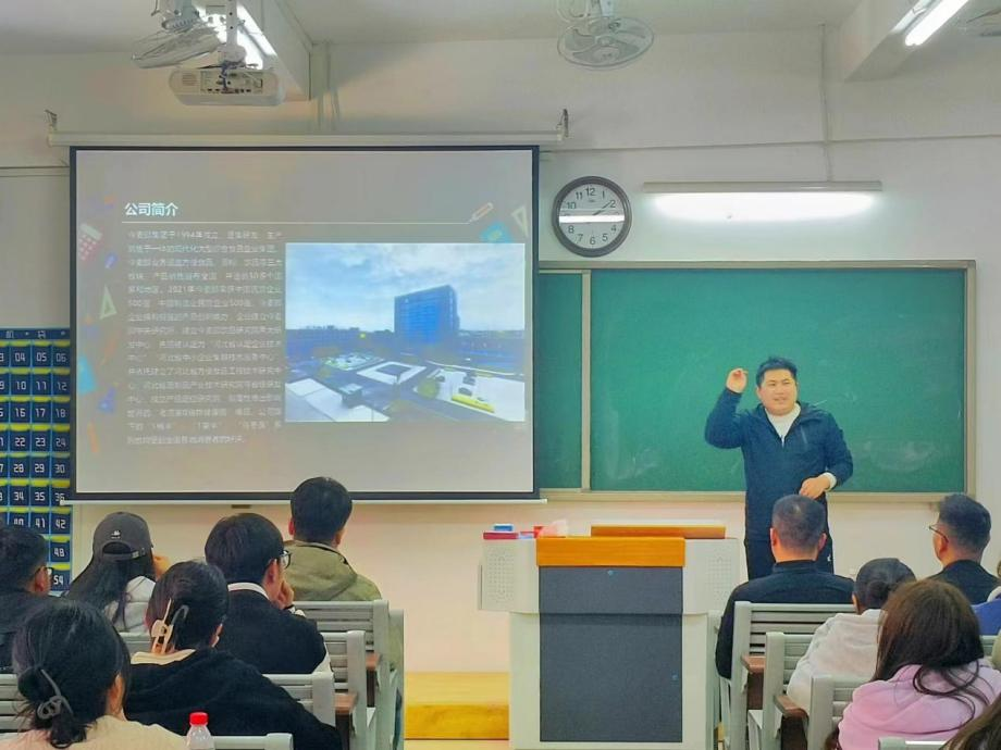 今麦郎食品股份有限公司安徽片区人力资源经理赵自成进行公司宣讲,赵自成从企业背景文化、企业发展历程、企业经营产品构成以及本次招聘计划和薪资福利待遇等进行了详细的讲解,同时赵自成从职业的发展角度鼓励学生勇于尝试和挑战,拼搏出精彩的人生。