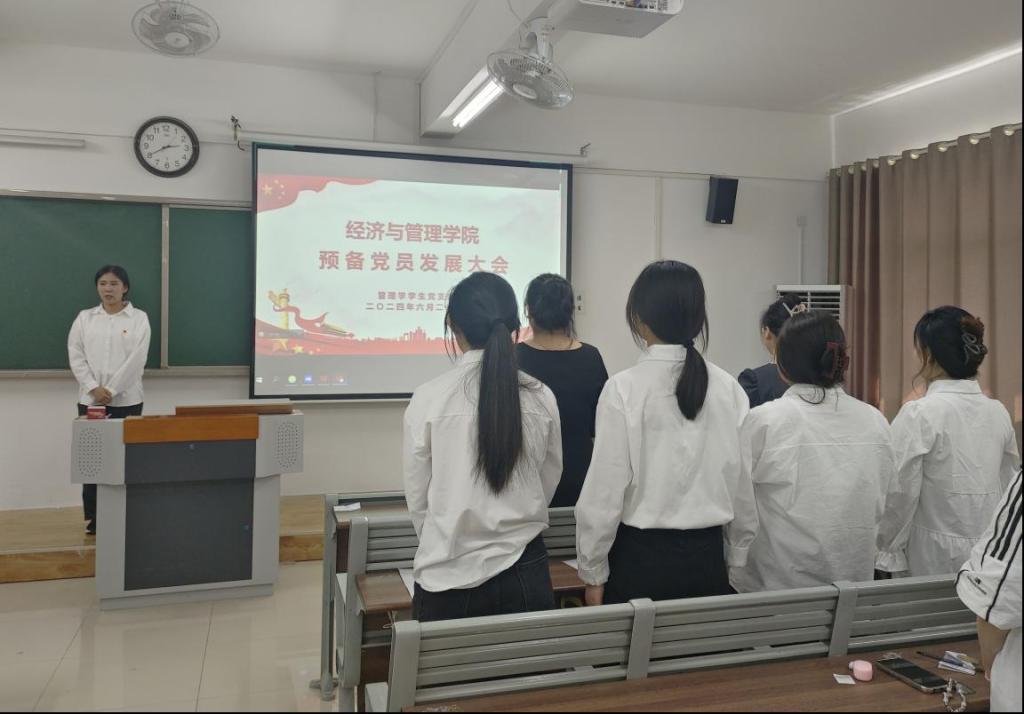 为深入贯彻党支部发展党员计划,加强党员队伍建设,永利集团3044欢迎你经济学、管理学学生支部于6月26日在二教422、423教室隆重召开预备党员接收大会。此次会议由支部委员丁阳、王晓勉主持,经济学、管理学学生支部全体党员共襄盛举。
