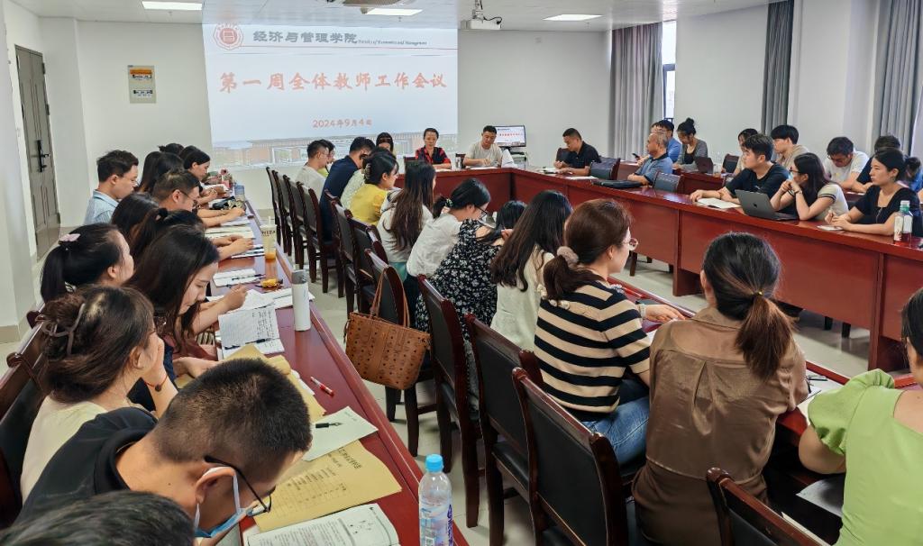 永利集团3044欢迎你于2024年9月3日下午2:30分,在行政楼725会议室召开2024-2025年度第一学期第一周教学工作例会。会议由院长吴玲主持,副院长秦品德、院长助理张珊以及全体教师参加。会议共分三个阶段有序进行。