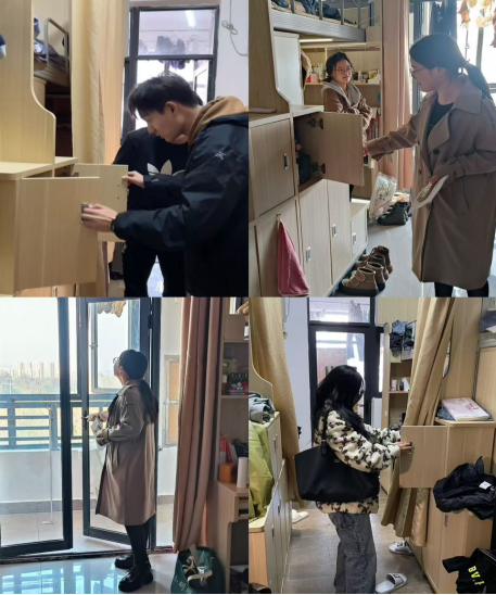 在本次宿舍安全隐患排查活动中,辅导员老师们逐一走进学生的宿舍,细致入微的开展排查工作,检查内容涵盖了宿舍消防安全、用电安全、卫生状况以及是否存在违规电器使用等多个方面。