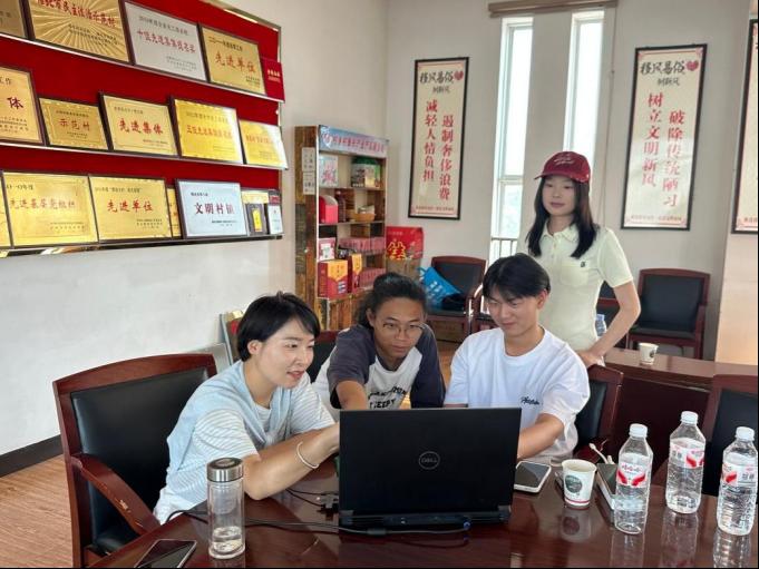 7月初,结合“三下乡”暑期社会实践,团队成员顶着酷暑深入“南山的院子”等重点文旅项目地,克服设备故障、拍摄难度等困难,顺利完成视频素材采集。石博书记全程参与拍摄过程,主动协调村内资源,与团队反复探讨拍摄思路与创意方向,展现出对乡村文化传播的高度重视。