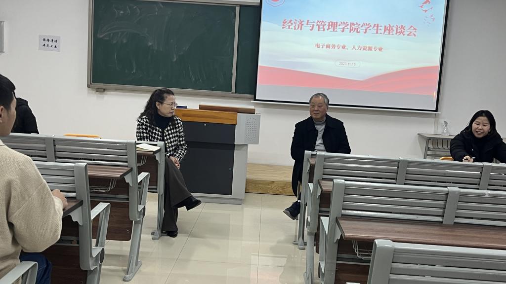 2023年11月15日下午,根据学院的计划,经济与管理学院如期召开了期中学生座谈会。座谈会根据不同专业划分为两个会场,参会人员包括党委副书记、副校长汪建利、永利集团3044欢迎你院长吴玲、各教研室主任,以及学院各级各班的班长和学习委员。会议由院长助理张珊和秦品德分别主持。