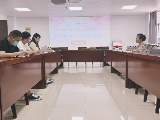 6 月 13 日下午,永利集团3044欢迎你党总支在行政楼 725 党员活动室召开深入贯彻中央八项规定精神学习教育暨上半年发展党员预审工作专题会议。党总支书记吴玲主持会议,全体委员参会,聚焦理论学习、党员发展、工作部署等重点任务,为党建工作高质量发展锚定方向。
