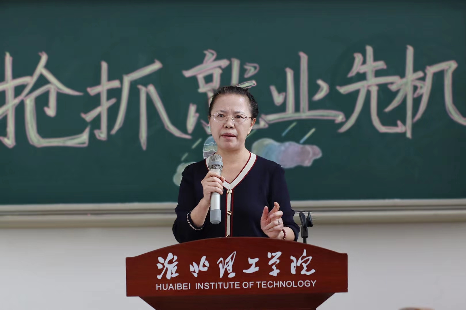 辅导员朱艳丽老师对第一届就业技能大赛进行具体介绍,呼吁学生积极主动参赛,积累经验,已达到更高质量更充分就业的目的。