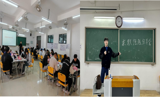 第二部分是由各专业在线下成功面试3家以上企业的学生分享交流,向本专业的学生分享面试注意事项与个人经验技巧;同时指出掌握专业知识对就业的关键作用,面试前应准备好包括英语证书、计算机证书、学校获奖证书、专业资格证书、兼职实习证明等等;还需收集求职公司的企业的排名、企业文化、核心业务等基本信息,了解清楚岗位需求以应对面试问题。在面试时,应该调整好心理状态,口齿清晰、语气平和地表达自己,适当地使用手势来表达观点。