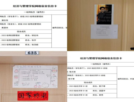 辅导员二进学生宿舍,形成具体举措解决学生问题,提供心理支持和疏导。各辅导员按就近、便捷、高效的原则完成了永利官网400余间学生宿舍的网格划分,除毕业班外的1600余名同学积极参与其中,并在每个网格单元设立二、三级网格员,张贴网格宿舍信息卡,形成“自我管理、自我服务、自我监督”的良好氛围。