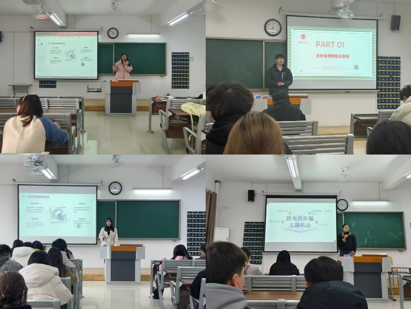班会伊始,辅导员通过PPT展示、视频播放等形式详细剖析了电信诈骗手段的特点和套路以及它所带来的社会危害,同时结合近期发生的真实案例,深入剖析了诈骗分子是如何利用受害者的心理弱点和技术漏洞实施犯罪,以警示学生在日常生活中要时刻保持警惕,克服贪婪和恐惧的心理,意识到电信诈骗的危害性,并强调“不轻信、不透露、不转账、多核实” 的 “三不一多” 原则。