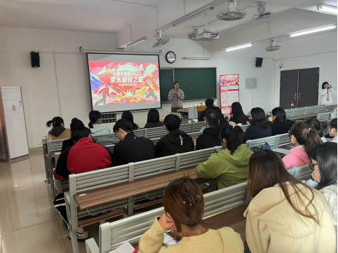罗强首先就京东物流的到来表示热烈的欢迎,表示京东物流作为物流行业的龙头企业,实力强大,平台广阔,希望同学们把握机会,结合自身特点及职业规划投递简历和选择。