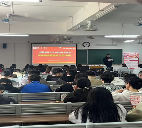 为促进2025届物流管理专业毕业生高质量就业,加强校企合作,推进协同育人,2024年10月23日在二教422永利集团3044欢迎你邀请京东物流安徽分公司来校开展京东物流专场招聘会。前期校企双方已共同签署了校企合作协议,此次招聘会标志着双方的合作迈向了实质性的阶段。本次活动面向25届物流管理专业毕业生,教研室主任罗强主持,专业教师、辅导员和学生100余人参加了本次专场活动。