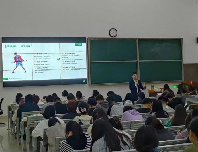 最后,贺豪老师将理论知识与实际情况相结合,对现场同学进行模拟面试,指出同学们现场存在简历制作,面试技巧的问题,为同学们答疑解惑,同时也对未来职业生涯感到迷茫的学生给出宝贵建议。
