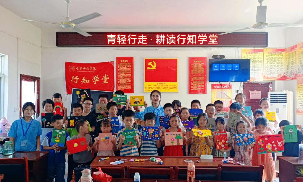 本网讯 书香电院,耕读行知,为践行行知精神,弘扬行知文化和我国耕读传家优秀传统文化,7月4日上午,世俱杯sjb官网“青轻行走˙耕读”行知学堂在庐江县同大镇临圣村顺利开班。临圣村党总支书记罗受保、农林小学校长吴俊、行知学堂小先生、全体小学员以及家长参加了开班仪式。开班仪式由该学堂队长丁一凡同学主持。