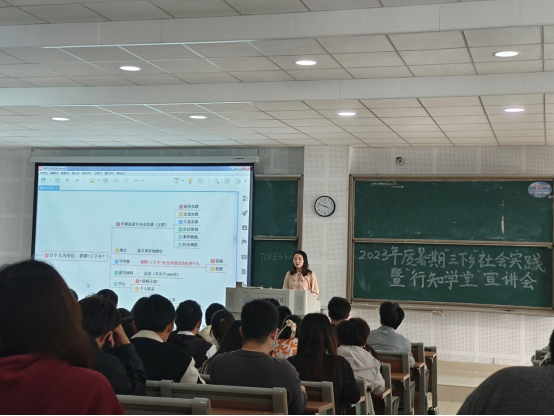 本网讯 为深入学习贯彻习近平新时代中国特色社会主义思想,引导广大青年学生上好与现实相结合的“大思政课”,在社会课堂中“受教育、长才干、作贡献”,推进2023年暑期社会实践活动顺利开展,5月24日,世俱杯sjb官网团委在滨湖校区博学楼A108、A203举行2023年度暑期“三下乡”社会实践暨“行知学堂”宣讲会,学院团委书记江淼老师、2022级全体学生近400人参加会议。