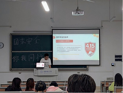 通过放映精心挑选的国家安全宣传视频,吸引了同学们的学习兴趣,也进一步加深了同学们的国家安全意识和家国情怀。结合观看视频,同学们谈了体会和感想。班级安全委员结合PPT讲解了国家安全教育日的由来及意义,围绕什么是国家安全、大学生应当如何维护国家安全等作了宣讲。宣讲中还列举了数个反面案例,告诉同学们今日之幸福安定的学习生活来之不易,是无数个默默维护国家安全的人一起巩固的。此外,通过视频和讲解,告诉同学们如何切身实地的保护国家安全,如何辨别可疑人员以及发现可疑人员后的举报方式。