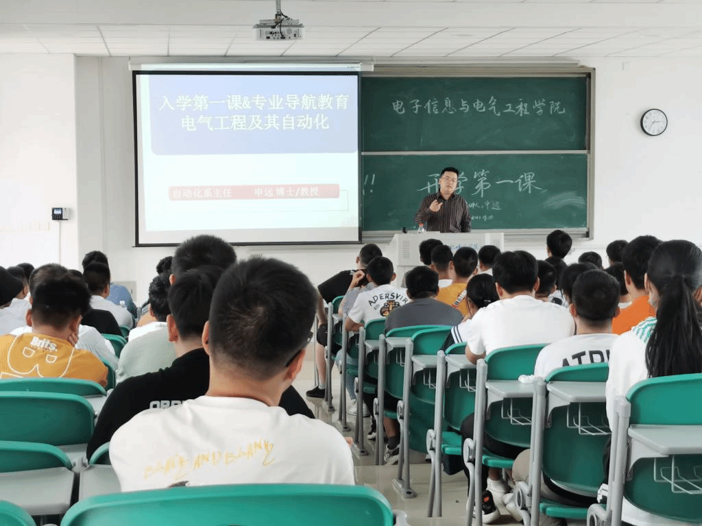 本网讯 为做好2021 级新生入学教育,引导新生尽快适应大学学习生活,促进优良校风、学风建设,电子信息与电气工程学院于9月6日、7日在滨湖校区博学楼D101开展了新生见面会暨新生入学教育。院长张忠祥、党委副书记胡石清、副院长范程华,各专业负责人、教学秘书、辅导员及2021级全体本科生共280余人参加。新生见面会由学院2012级新生辅导员江淼老师主持。