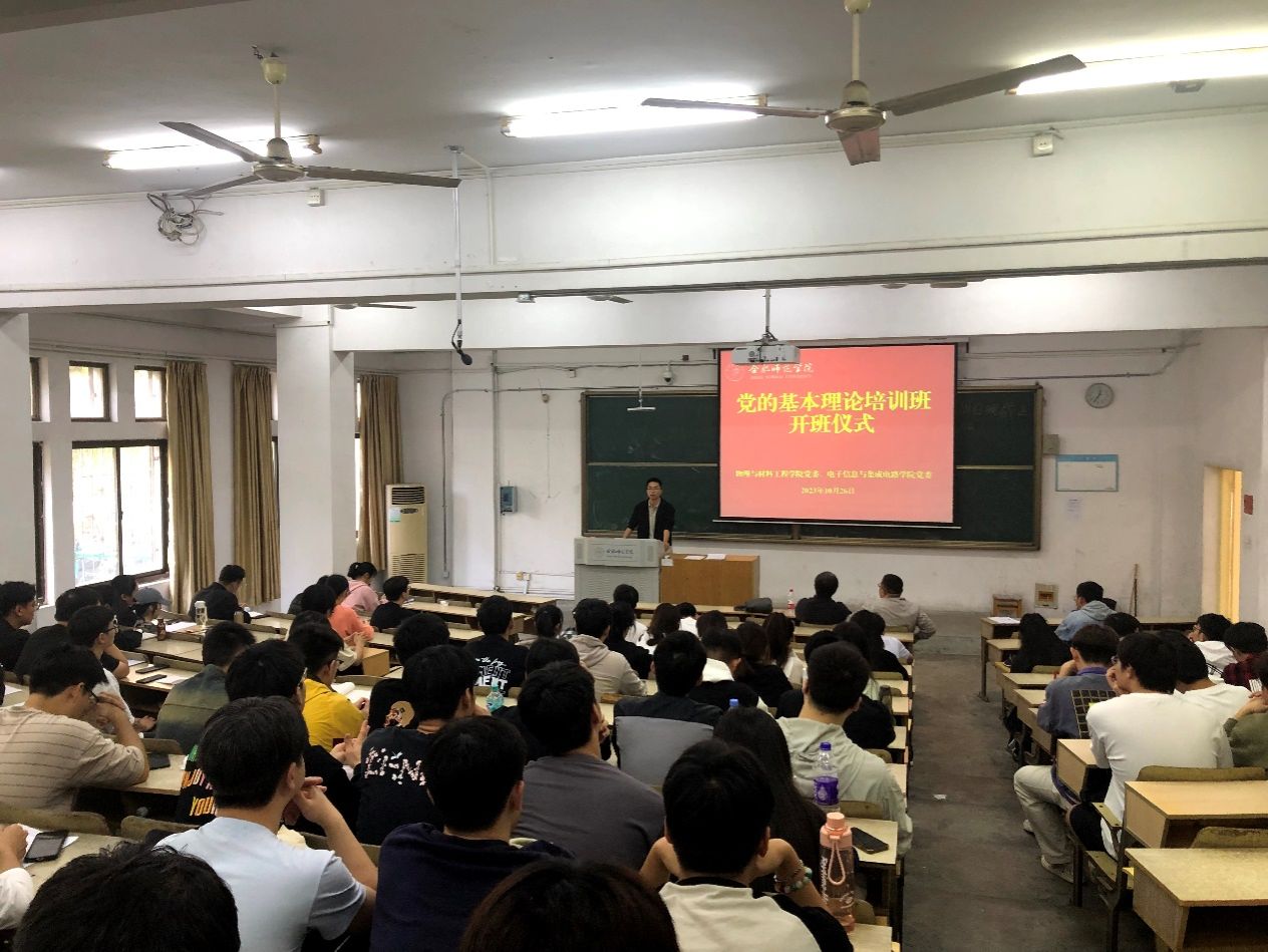 本网讯 为强化党员政治理论学习,增强党员责任担当,提高党员党性修养,增强基层党组织的凝聚力和战斗力。10月26日,世俱杯sjb官网分党校与物理与材料工程学院分党校在锦绣校区联合举办2023年下半年党课培训班,两个学院的发展对象和预备党员参加培训。世俱杯sjb官网党委副书记胡石清、物理与材料学院党委副书记吴震以及辅导员葛宇飞、费文清老师等参与开班式,会议由费文清主持。
