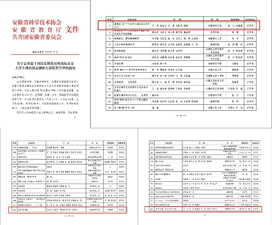 本网讯 近日,第十四届安徽省百所高校百万大学生科普创意创新大赛获奖情况正式公布,世俱杯sjb官网学生团队作品经过激烈的角逐,由张江、时晶晶两位老师指导,王妍、张先云、王慧、王懿冰、高珺等同学的参赛作品《推陈出“芯”——打开CM8610芯世界大门》荣获省级三等奖,另外2个团队作品获评省级优秀奖。