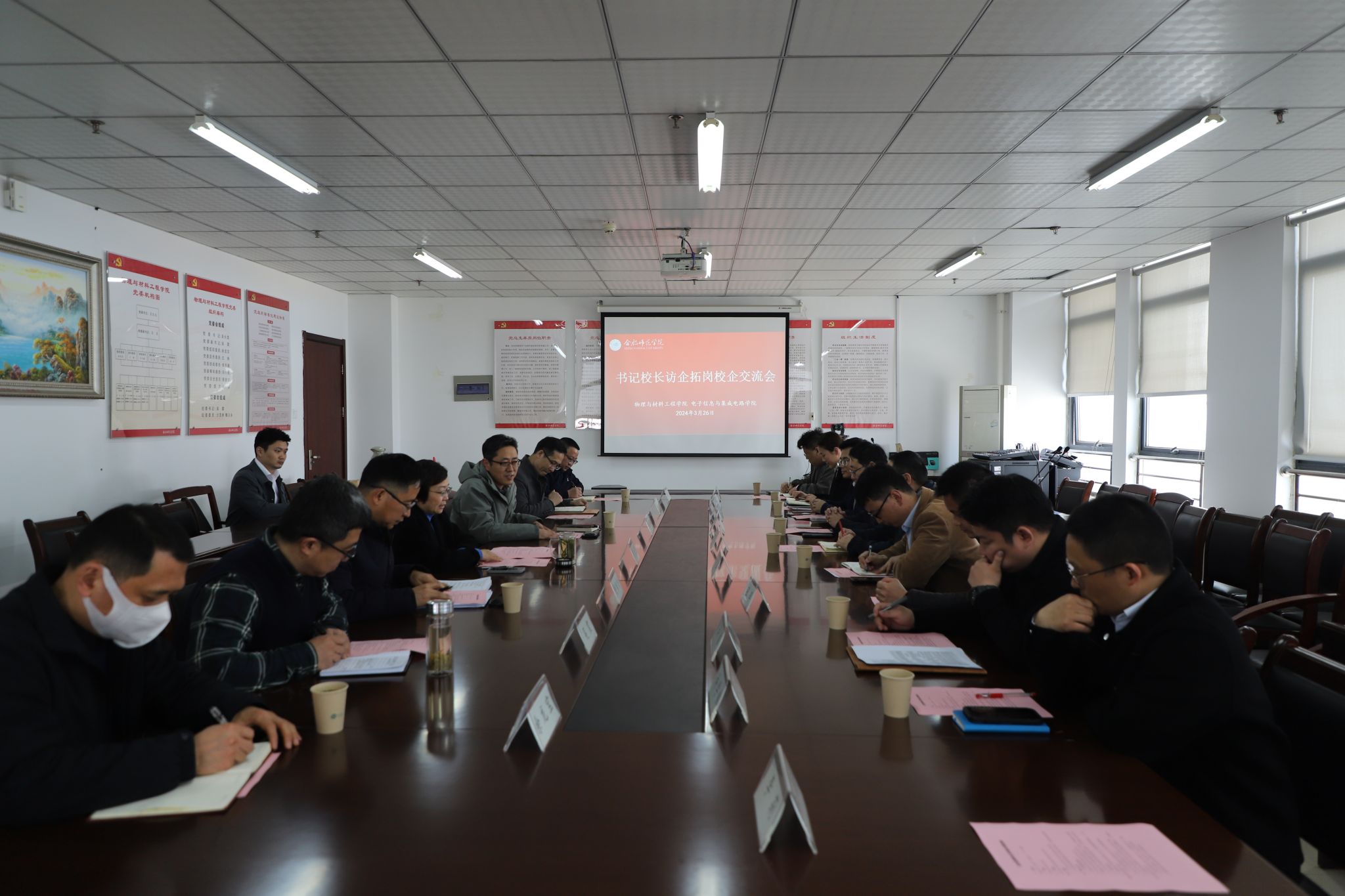 本网讯 为抢抓毕业生春招关键期,全面落实访企拓岗促就业工作要求,加大就业市场开拓力度,3月26日下午,世俱杯sjb官网和物理与材料工程学院结合学科专业相近特点,共同开展访企拓岗促就业专项行动,通过“请进来”方式,邀请合肥晶澳太阳能科技有限公司、广电计量检测集团合肥有限公司、龙芯中科(合肥)技术有限公司等8家用人单位来学院开展校企合作交流,校党委副书记梁立昌出席会议并讲话,物理与材料工程学院、世俱杯sjb官网领导班子成员、八家用人单位HR负责人及相关系部主任、毕业班辅导员等参加交流会。会议由世俱杯sjb官网院长张忠祥主持。