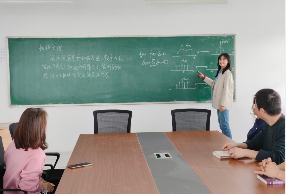 陈珺老师作为本次备课活动的主讲人,讲解了《抽样定理》一节的内容,并介绍了自己的教学思路、教学重难点和教学设计过程,其他老师也根据自己的授课和备课情况进行充分发言,积极讨论,最终集体构建课程实施方案,形成统一的授课目标。在集体研讨的过程中,每个老师更加准确地把握教学内容,从而实现教学目标。