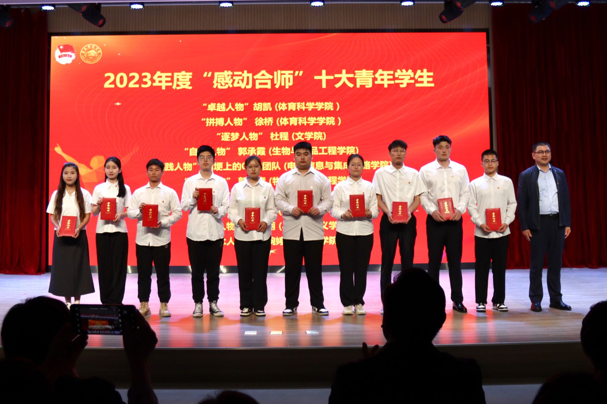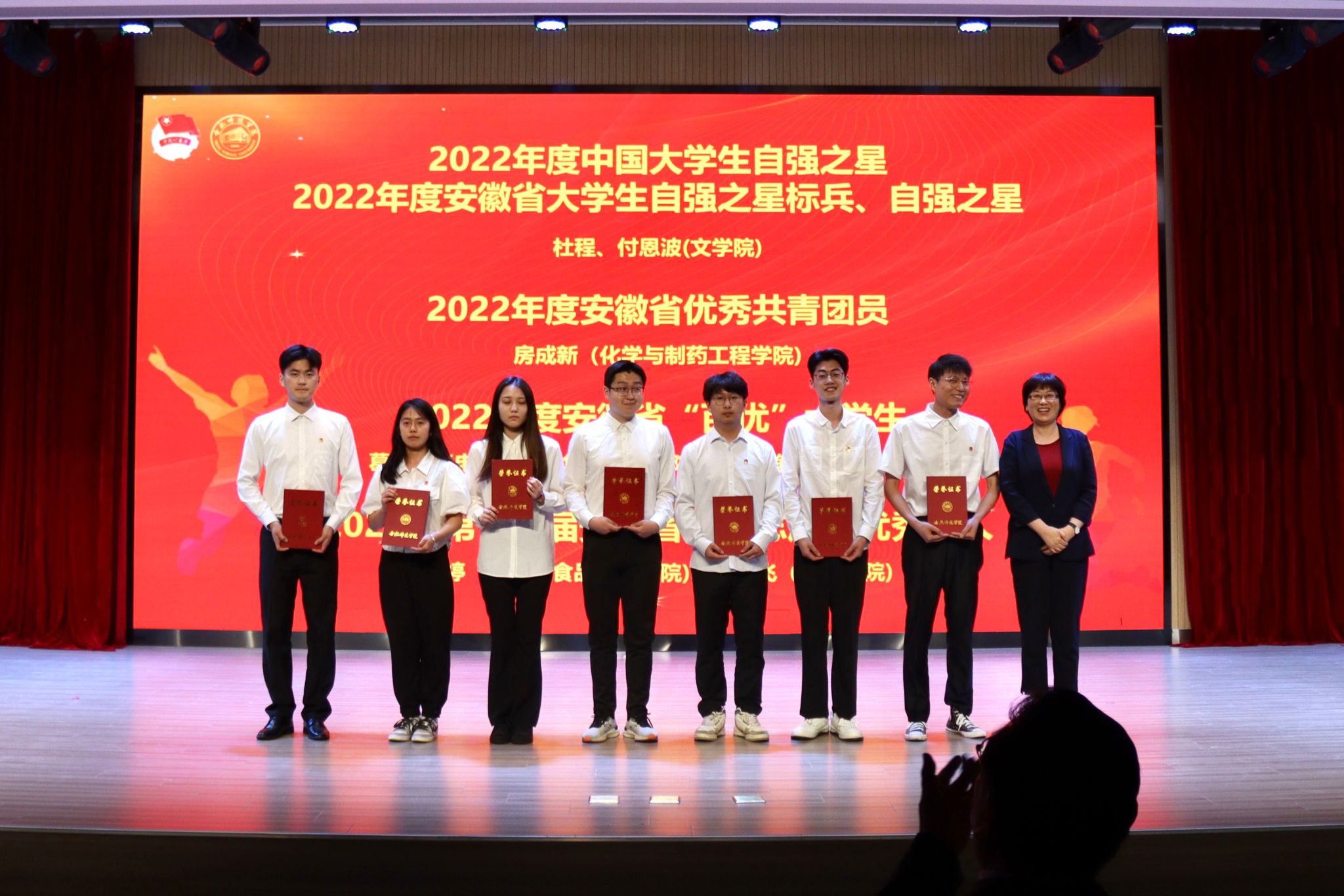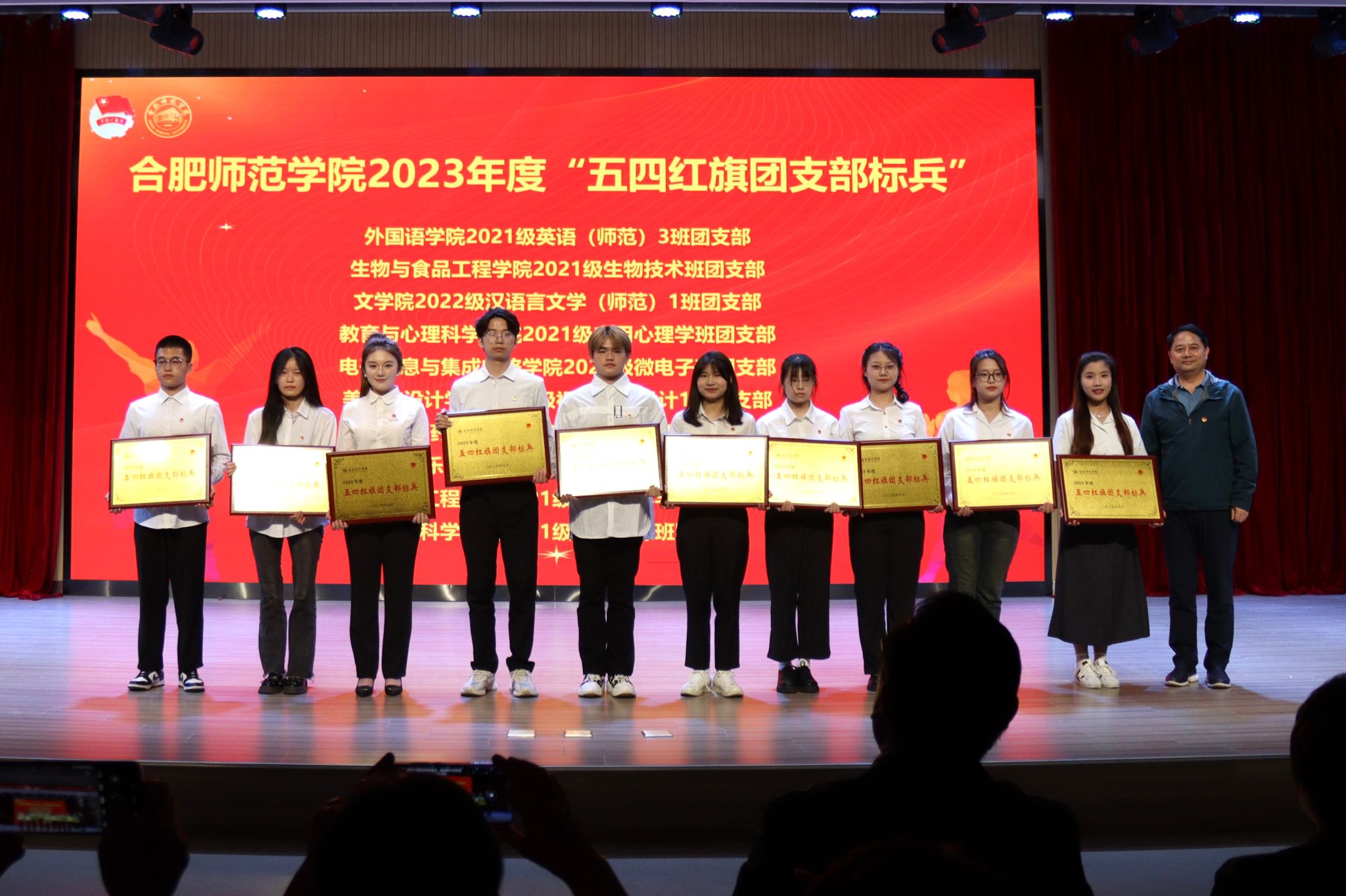 其中,学院团委获评2023年度校“五四红旗团委”称号(年度考核第一名),院学生会获评2022-2023学年优秀学生会称号,2022级微电子班团支部获评2023年度“五四红旗团支部标兵”称号,葛正宇同学获评2022年度安徽省“百优”大学生荣誉称号,“田埂上的00后”团队获评2023年度“感动合师”十大青年学生荣誉称号,2021级电气工程及其自动化2班方杰同学获评2023年度校“十佳青年志愿者”称号,青轻行走·耕读行知学堂和阜阳市大许村行知学堂获评2023年度校级“示范行知学堂”称号。