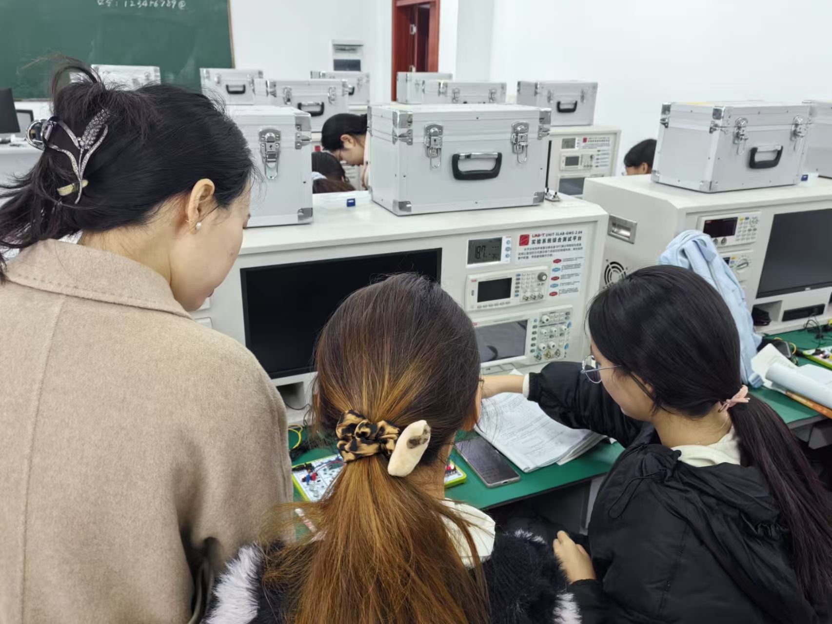 12月16日,学院党政班子带队在滨湖校区进行了期末教学纪律检查。在博学楼A302教室,检查组一行旁听了李琛璐老师的《工程电磁场》课程。在博学楼C302教室,检查组一行对万丽娟老师的《模拟电子技术基础实验》实验课程进行了现场观摩等。通过现场听课,深入了解教师教学情况和学生学习状态,并就有关问题提出改进要求。检查组一行还检查了学院部分实验室,对实验室运行状况进行了评估,并对实验室安全管理、设备维护以及实验教学效果提出指导意见。在当天召开的现场工作会议上,检查组认为,学院各系部的期末教学秩序整体平稳,期末教学稳步进行。会议还就学院期末考试安排及考风考纪宣传提出明确工作要求。