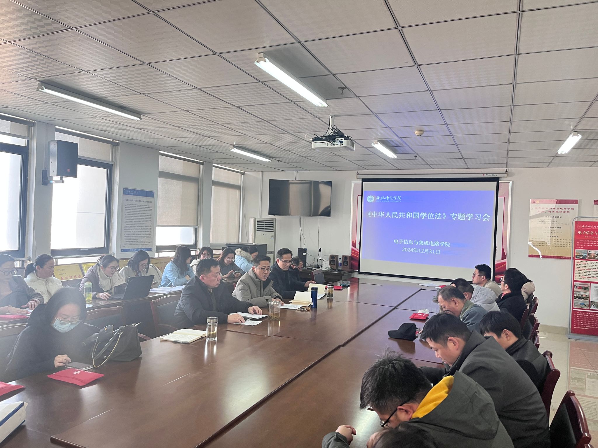 全体参会人员集体学习了习近平总书记关于教育的重要论述,党委副书记、院长张忠祥领学了《中华人民共和国学位法》学习要点,参会有关人员进行了交流讨论。通过本次专题学习,学院教师们充分认识了学位法的重大意义,明确了学位工作的法律规定和管理要求,为提高学院人才培养质量、提升依法治院工作水平起到了积极促进作用。