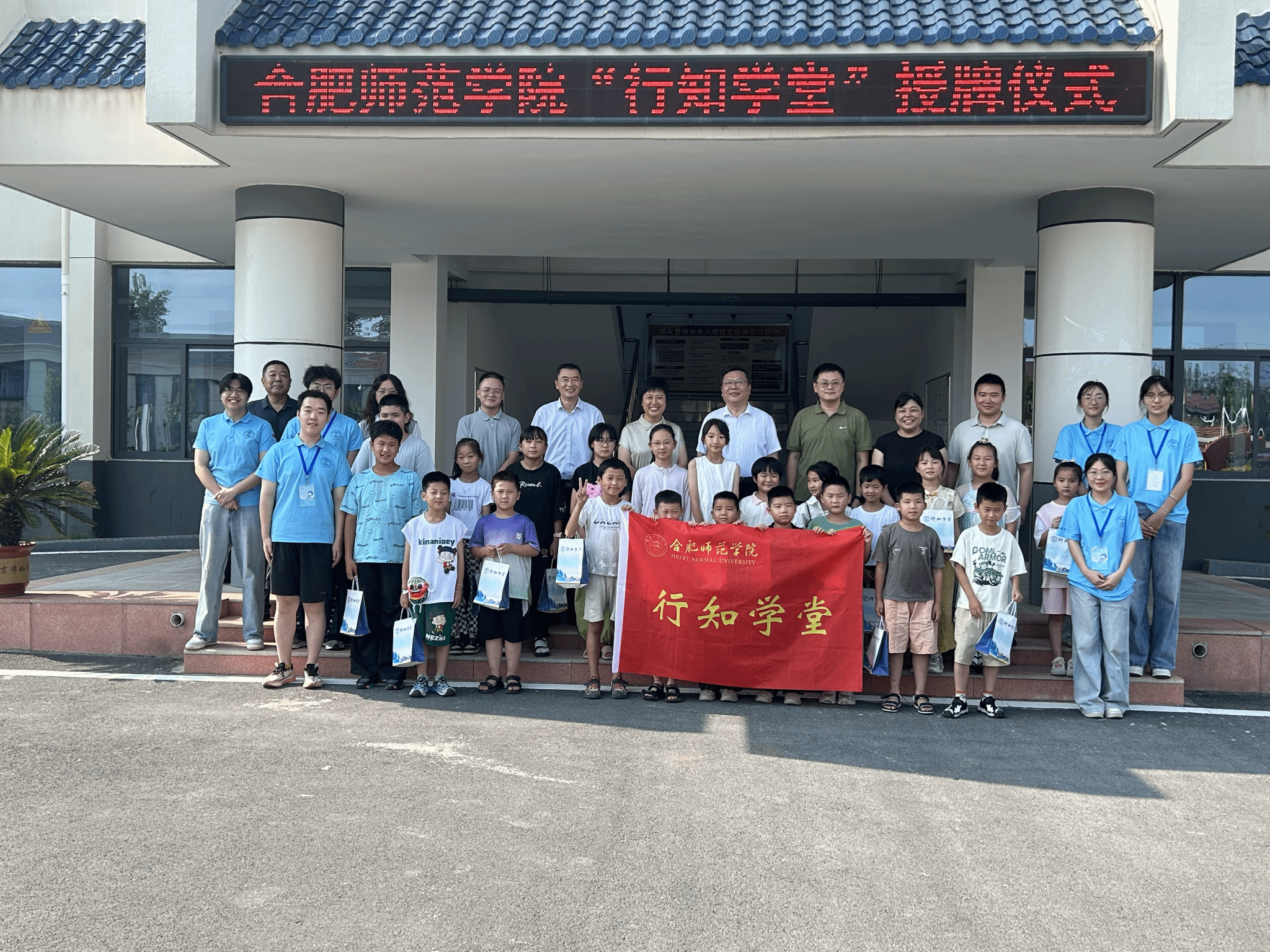 7 月 18 日,院党委书记徐成钢在校团委、世俱杯sjb官网等负责人陪同下,赴六安市霍邱县冯瓴镇走访慰问暑期“行知学堂”实践团队的“小先生”与“小学员”,并为 “行知学堂” 实践基地授牌,霍邱县委及冯瓴镇党委负责同志热情接待来访一行。