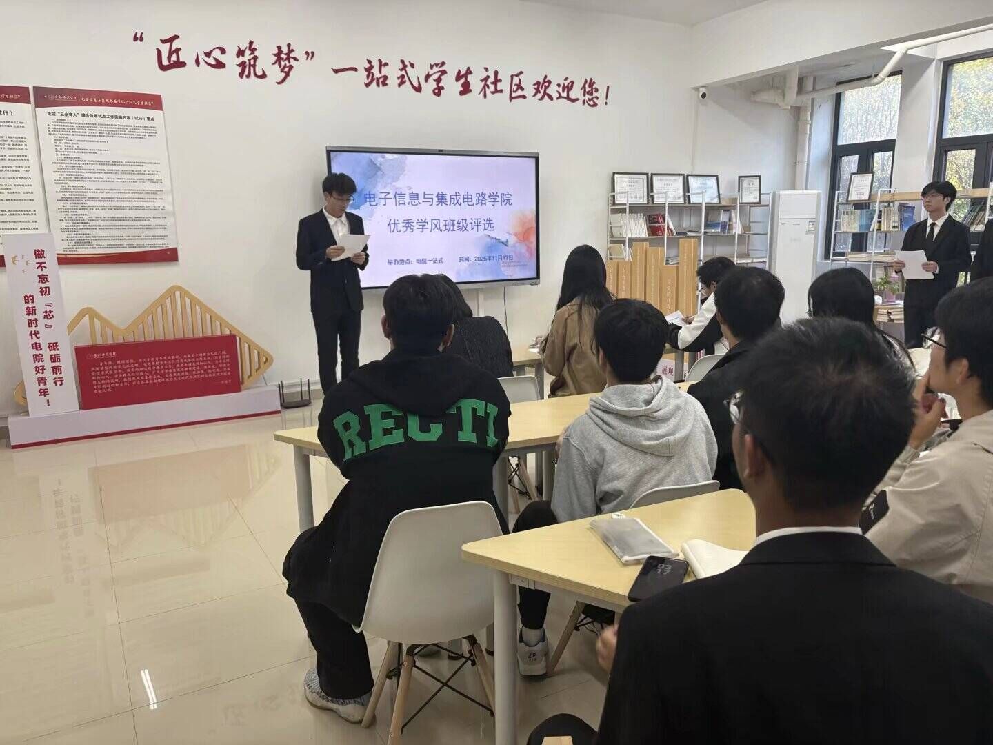 本次评选活动得到了各班级的积极响应和广泛参与。经过前期自主申报和初步筛选,共有多个优秀班级入围最终的现场展示环节。活动现场,各班学生代表依次上台,通过精心准备的PPT、视频和详实的数据,从思想建设、班风学风、学业成绩、学科竞赛、创新创业、文体活动等多个维度,全面而生动地展示了班级在创建优良学风过程中的特色做法与丰硕成果。从由“学霸先锋”组建的答疑小组,到全员参与的“无手机”课堂;从在“挑战杯”、“电子设计竞赛”中摘金夺银的辉煌战绩,到班级成员间团结互助的温馨故事……一个个鲜活的案例,生动诠释了“学风正,则班风兴”的深刻内涵。