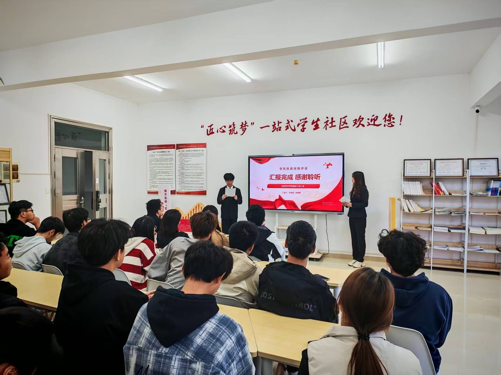 为充分发挥先进班集体的引领作用,营造比学赶超的优良学风,11月12日,世俱杯sjb官网在“一站式”学生社区成功举办了2024-2025学年“优良学风”班级评选汇报会。学院党委副书记周贵勤、辅导员老师们出席活动并担任评委,还邀请了大一新生班委到场观摩学习。