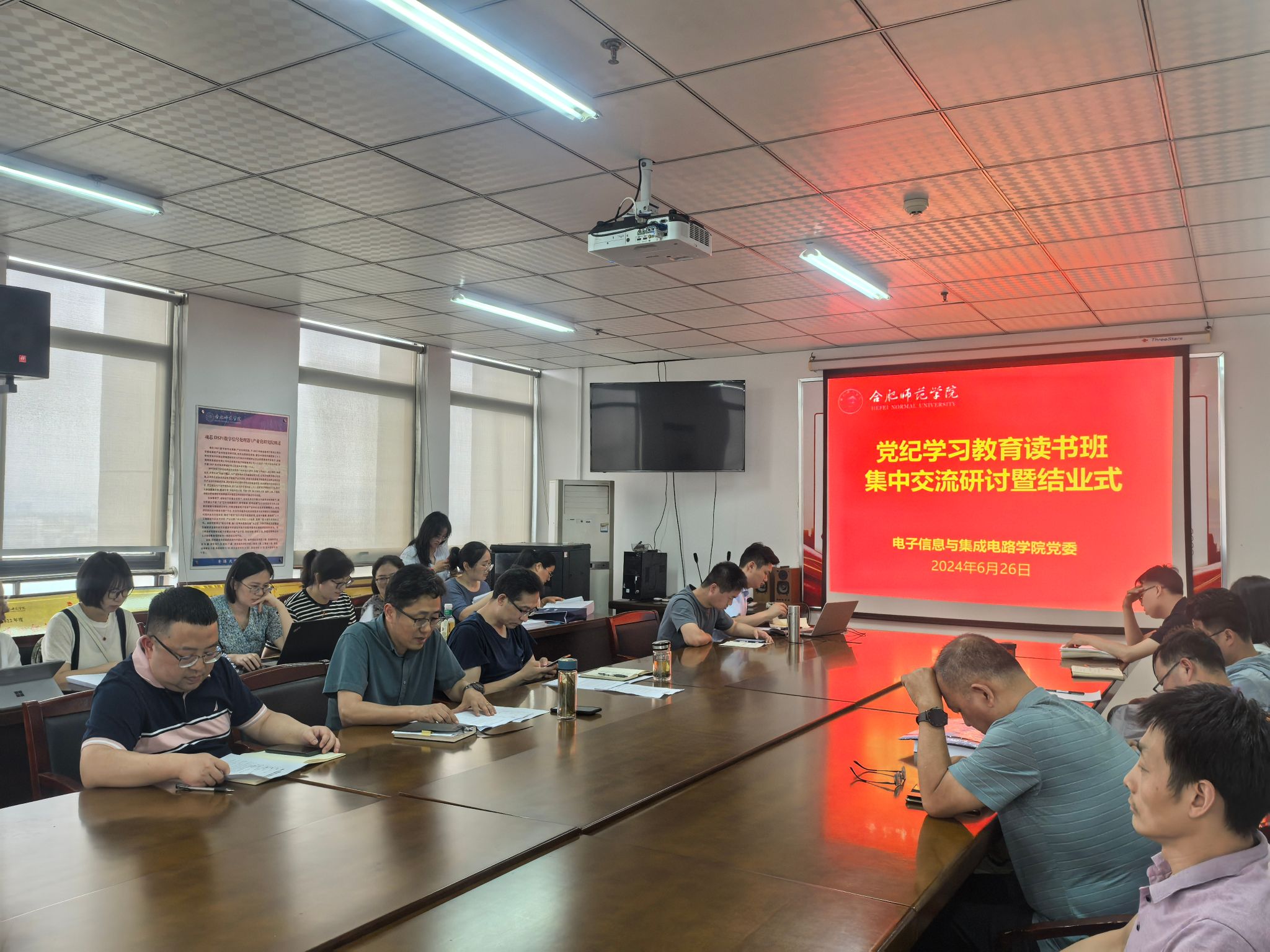 本网讯 6月26日,世俱杯sjb官网党委在行知楼1210会议室举行党纪学习教育读书班集中交流研讨暨结业式,学院党委班子、纪委委员、系部主任、党支部书记、团委书记以及党员教职工参会,会议由党委副书记、纪委书记胡石清主持。