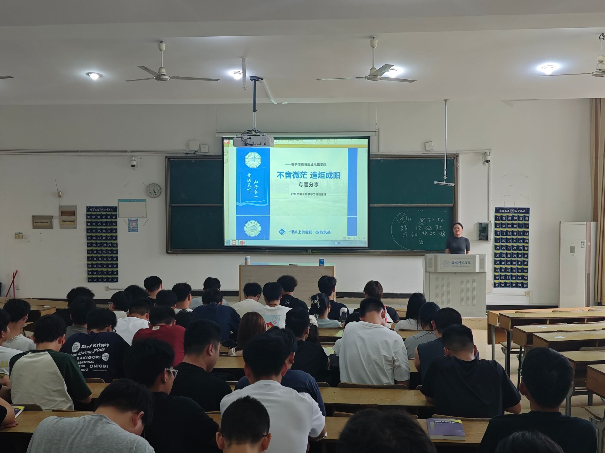 随后,学院邀请优秀学生党员代表为新生做党员典型事迹分享,发挥党员的先进性和先锋性。2022级微电子科学与工程班王瑞同学讲述了如何在党的培养下,从迷茫到坚定,将个人理想融入国家发展,在专业学习、社会实践中锤炼党性、服务集体的心路历程,展现了党员先进性的具体内涵。2025级新一代电子信息技术研究生孔旭同学作为新生党员代表向各位同学分享了自己入党后的心得体会,他表示作为党员应该坚持全心全意为人民服务的宗旨,以严格的标准要求自己,积极参加社会实践努力提升自我,将行动付诸于实践。