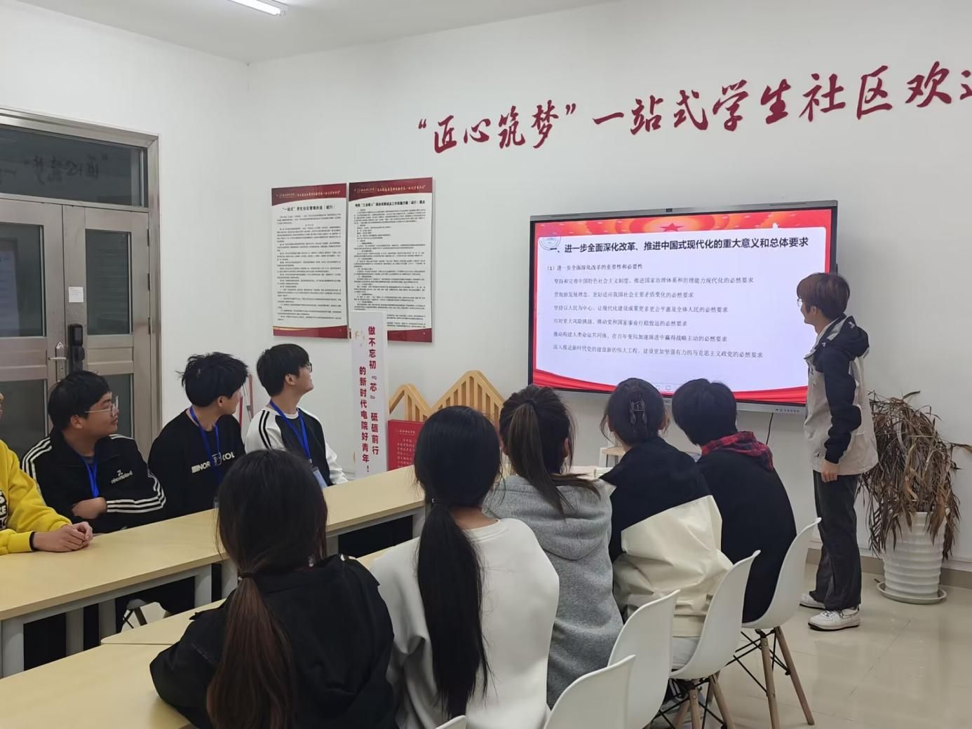 本网讯 为进一步深入学习贯彻党的二十届三中全会精神,搭建团员青年理论学习交流平台,11月2日,世俱杯sjb官网团委在滨湖校区“匠心筑梦”一站式学生社区举行了电院学习贯彻党的二十届三中全会精神青年宣讲会。