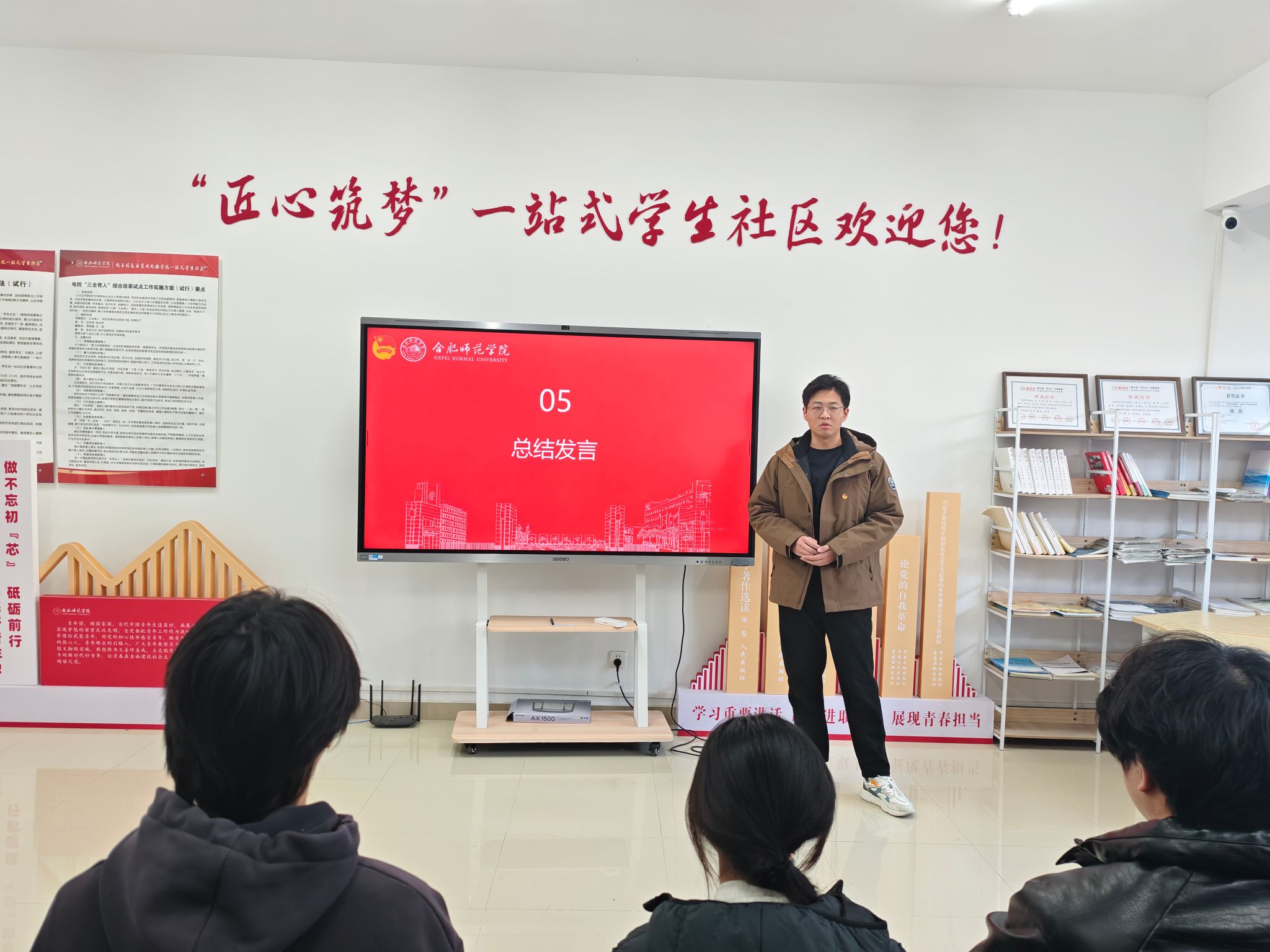 马文斌向所有新团员表示欢迎,勉励大家要牢记今日誓言,坚定政治方向,不断提升理论素养与综合能力,同时要积极投身实践,在学习竞赛、社会服务与集体活动中主动担当,积极向党组织靠拢,以实际行动践行青年使命。